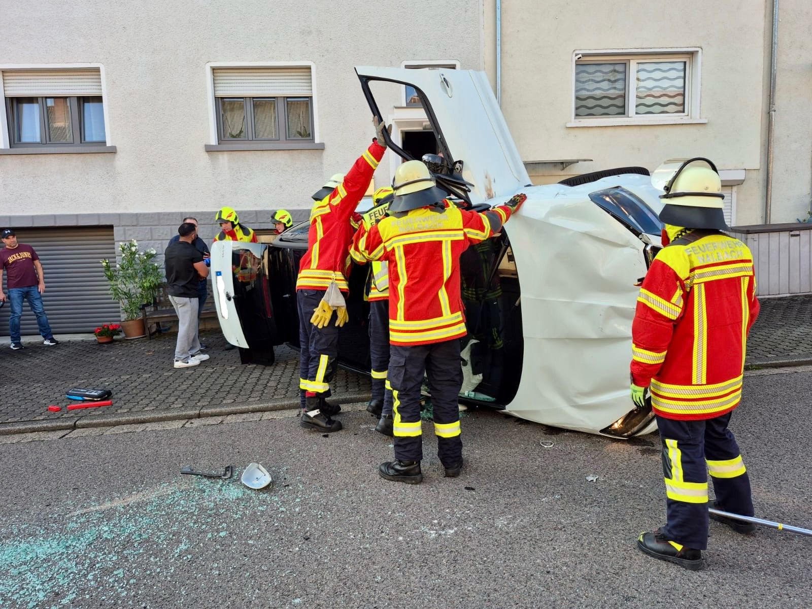 Am heutigen Freitag, den 01.08.2025, wurden wir zu einem Verkehrsunfall mit Überschlag alarmiert. Beim Eintreffen der Einsatzkräfte befand sich die Fahrerin bereits außerhalb des verunfallten Pkw und wurde vom Rettungsdienst medizinisch versorgt.