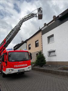 Erste Versuche, die Katze mit Steck- und Teleskopleitern zu erreichen, blieben erfolglos. Daher wurde die Drehleiter der Feuerwehr Dillingen nachalarmiert, um die Rettung sicherzustellen. Mit vereinten Kräften und unter Einsatz der Drehleiter konnte die Katze schließlich wohlbehalten geborgen werden.