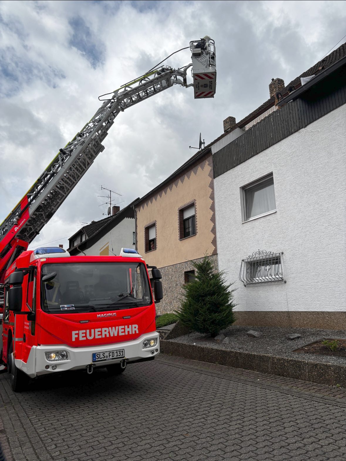 Heute Vormittag wurden wir gegen 10:58 Uhr zu einem Einsatz in Nalbach in der Straße Mühlenberg alarmiert. Die Lage vor Ort bestätigte die Meldung – eine Katze saß in luftiger Höhe auf einem Dach und konnte aus eigener Kraft nicht mehr herunterkommen.